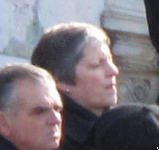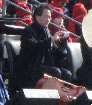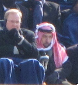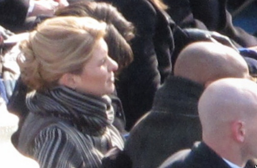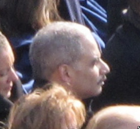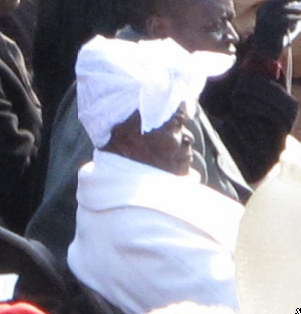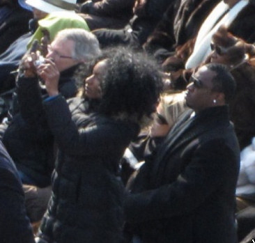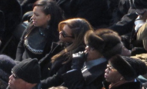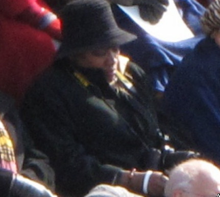 If you see a woman in a white coat and a white head wrap just behind Craig Robinson and his wife, and just in front of Eric Holder, she’s identified as Obama’s grandmother from Kenya.
