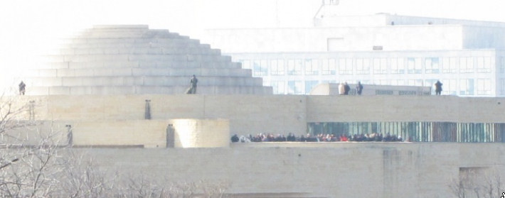 This made me curious, and as near as I can tell, they were on top of a building bordered by 3rd, 4th, C and Independence. And it appears to be the least architecturally or historically significant building around, but it occupies an entire city block. And it couldn’t be one that had drastic security concerns. So I’m betting the anchors were on the roof of the US Post Office.