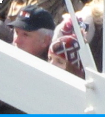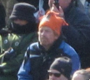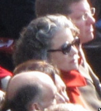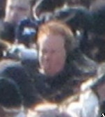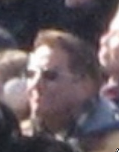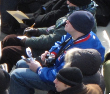 I think you’re seeing the print journalists’ section. Just about everybody has a notepad. In the snapshot viewer, one woman in that section is identified as Patricia McCarter, reporter for The Huntsville Times. She’s wearing a red hat in the second row, closest to the photographer, 3 seats down from the Cubs fan.
