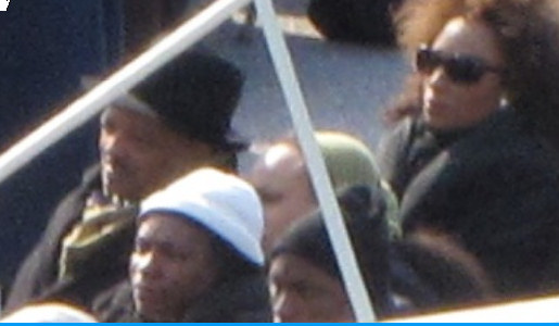 Beyonce and Jay-Z (damn, he’s wearing a cozy warm hat, and she’s bareheaded)