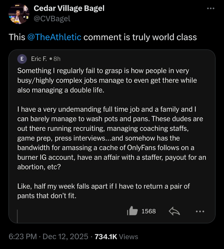 I have a feeling this is going to (ALMOST) rival the Sandusky scandal when all is said and done. Just because it appears to involve consenting adults doesn’t minimize it.
