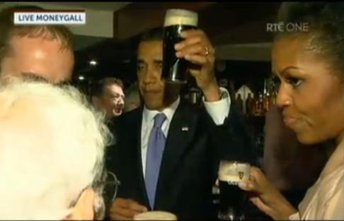 Ha! He just went into the local pub gave a speech, got a family photo taken and then went to the bar plonked down some cash and ordered a round. Then drank the Guinness in big gulps and is currently shooting the shit with the barman. He’s playing the Irish even better than Clinton did. Removed from local politics he’s a PR master.