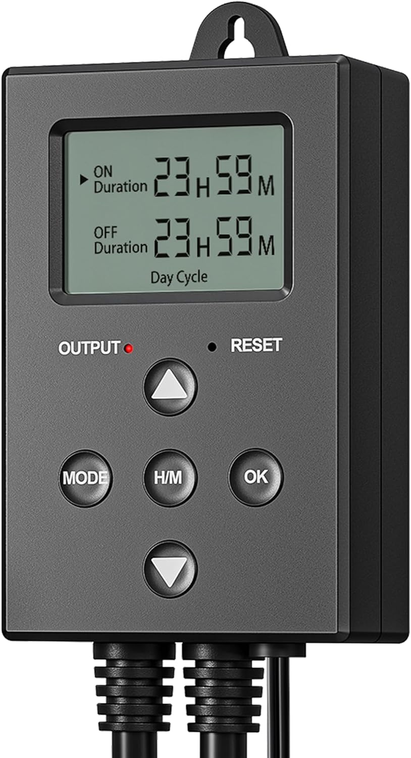 It has a timer mode and also a Dawn-to-Dusk mode. Specifically for fountains.
