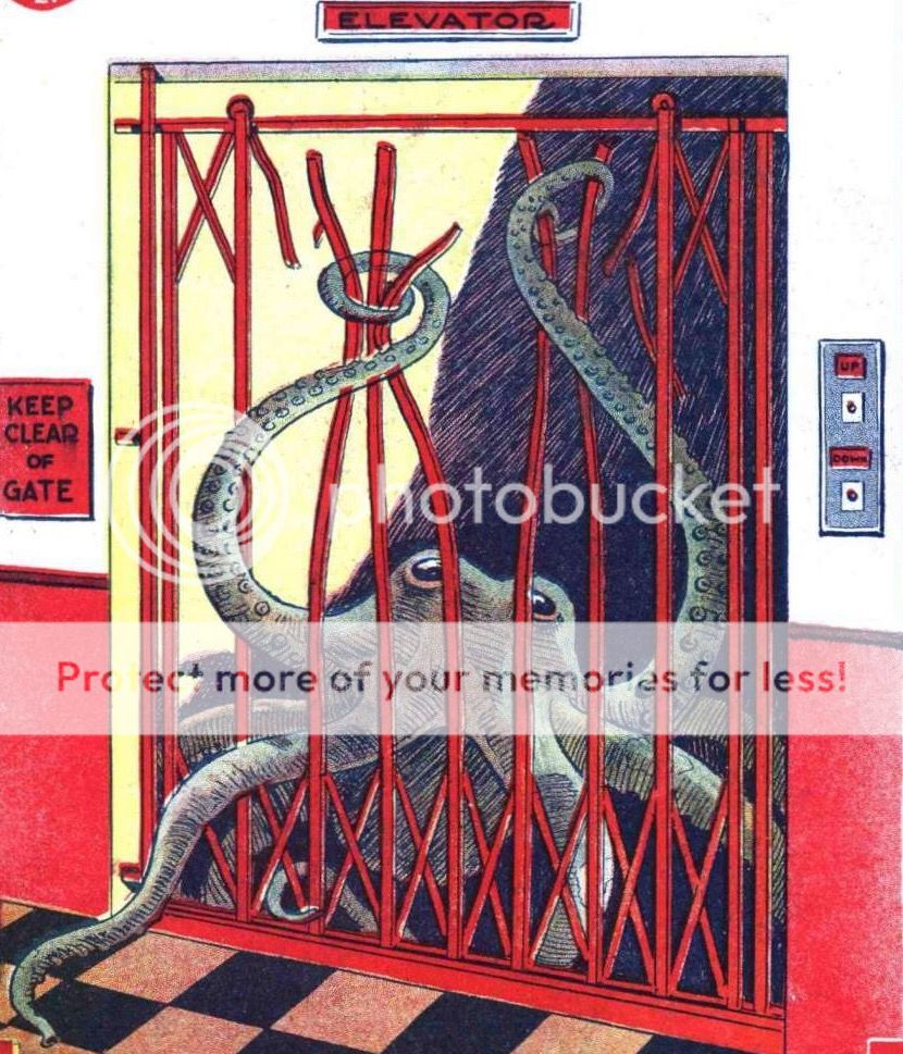 Ollie Octopus discovered that the prank of pressing all the buttons in a cage elevator has unintended consequences.