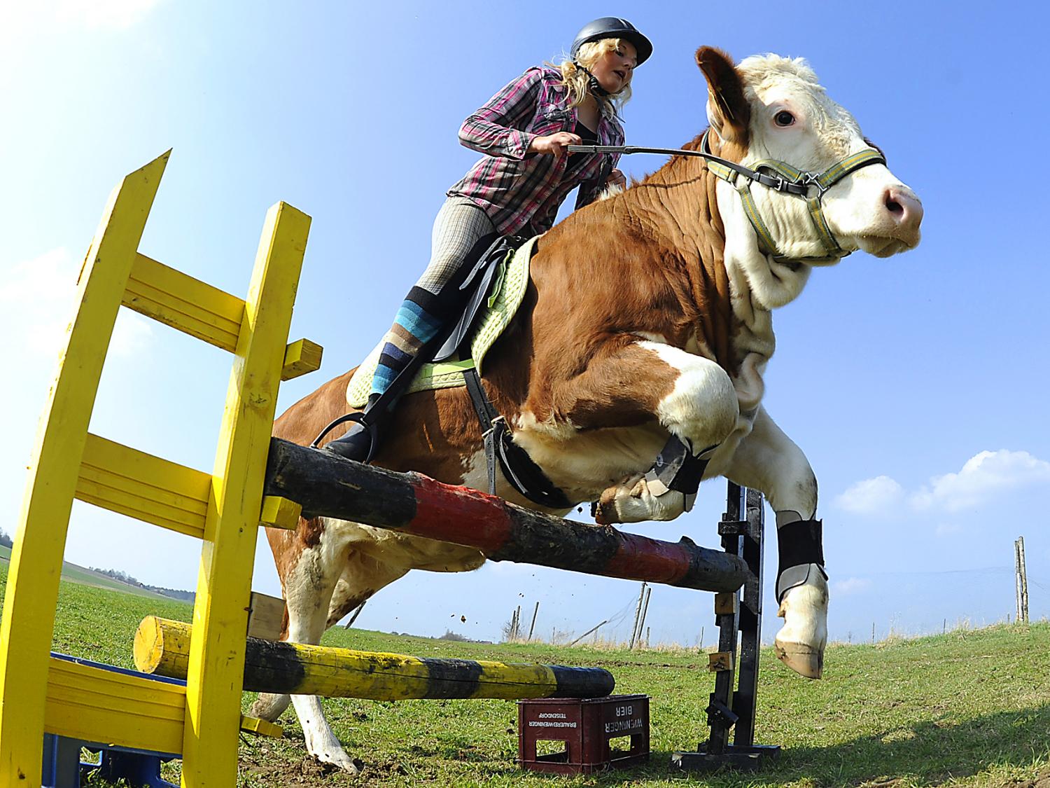 Not to nitpick, but I don’t know that I’d classify what that cow is doing as “jumping”. Certainly nowhere on par with a horse that jumps. The cow always has 2 feet on the ground.