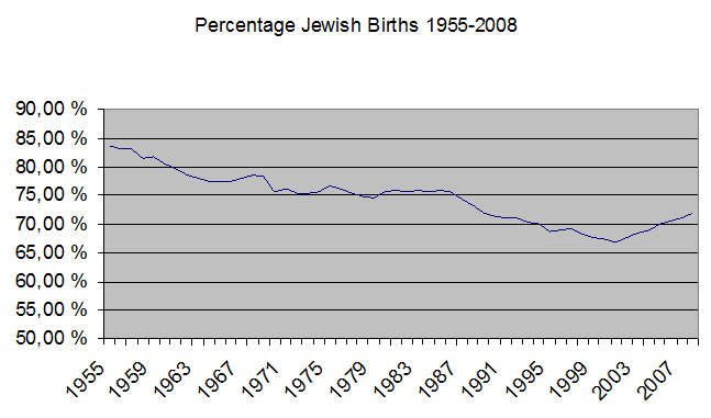 For 50 years, the percentage of Jewish births in Israel steadily declined. Then, about 10 years ago, the trend reversed. Since then, the percentage of Jewish births has been steadily increasing.