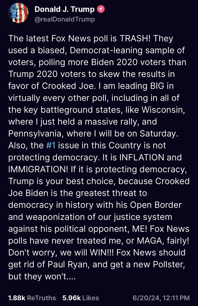 Apparently Fox has a solid polling division, so their numbers are pretty reliable. Just makes it sweeter.
