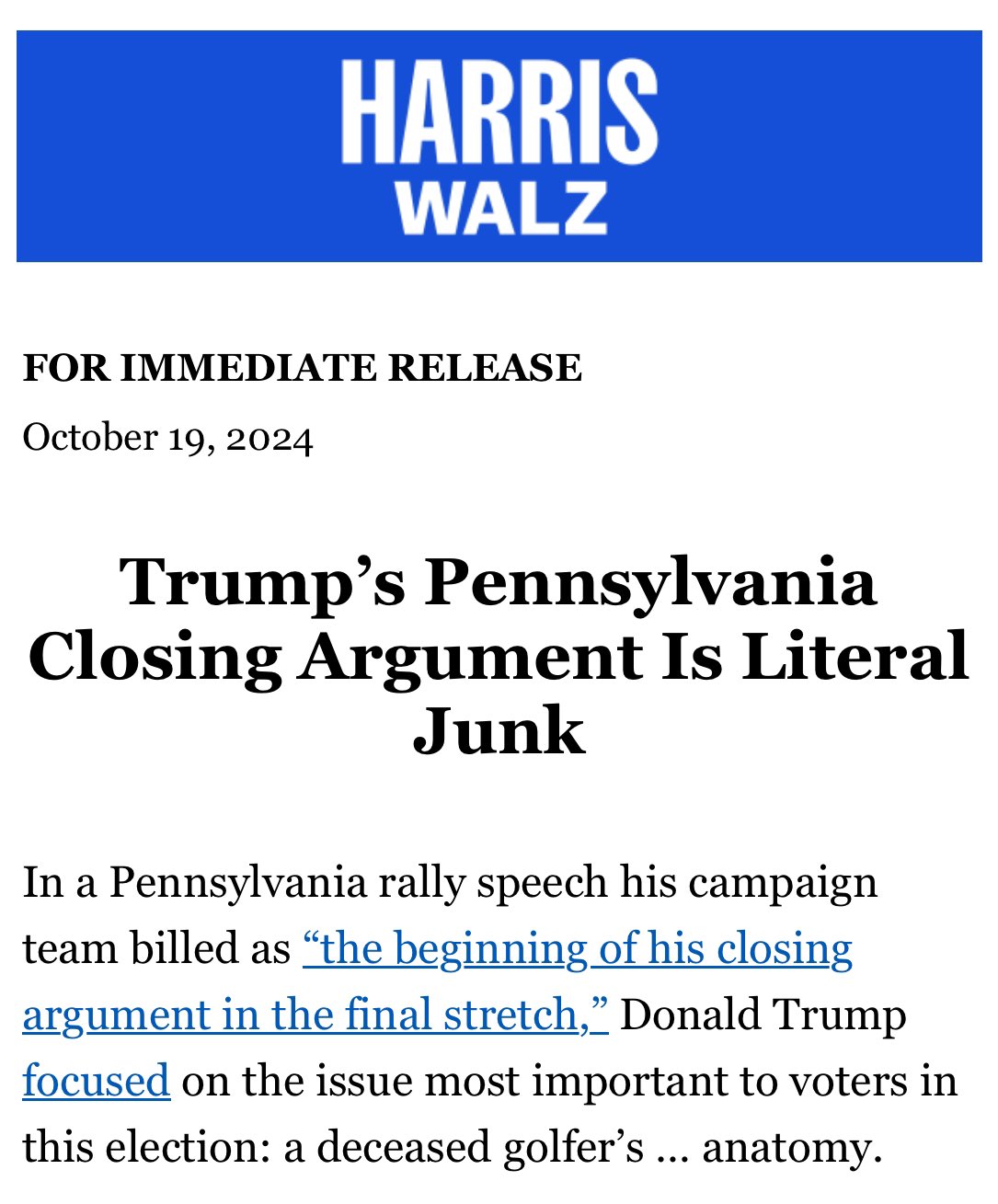 Fox News cut away from Trump’s rally today as he was talking about Arnold Palmer’s gargantuan schlong and started showing Harris’ rally instead.
