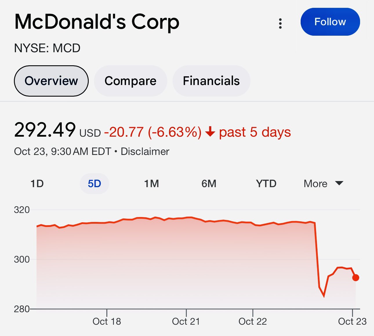 Perhaps McDonalds intentionally sold e-coli onions in an effort to mask the stock value results of Trump’s visit.