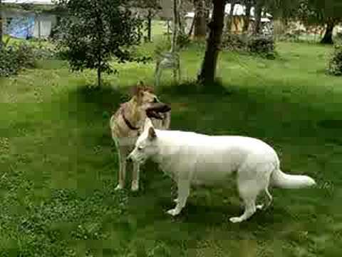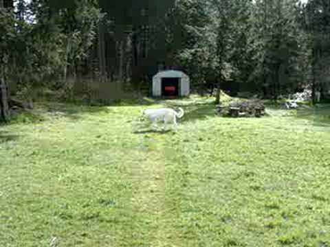 Today Bella treed a cat but then the kitty came down and hissed and growled at her, so she yelped and ran away.