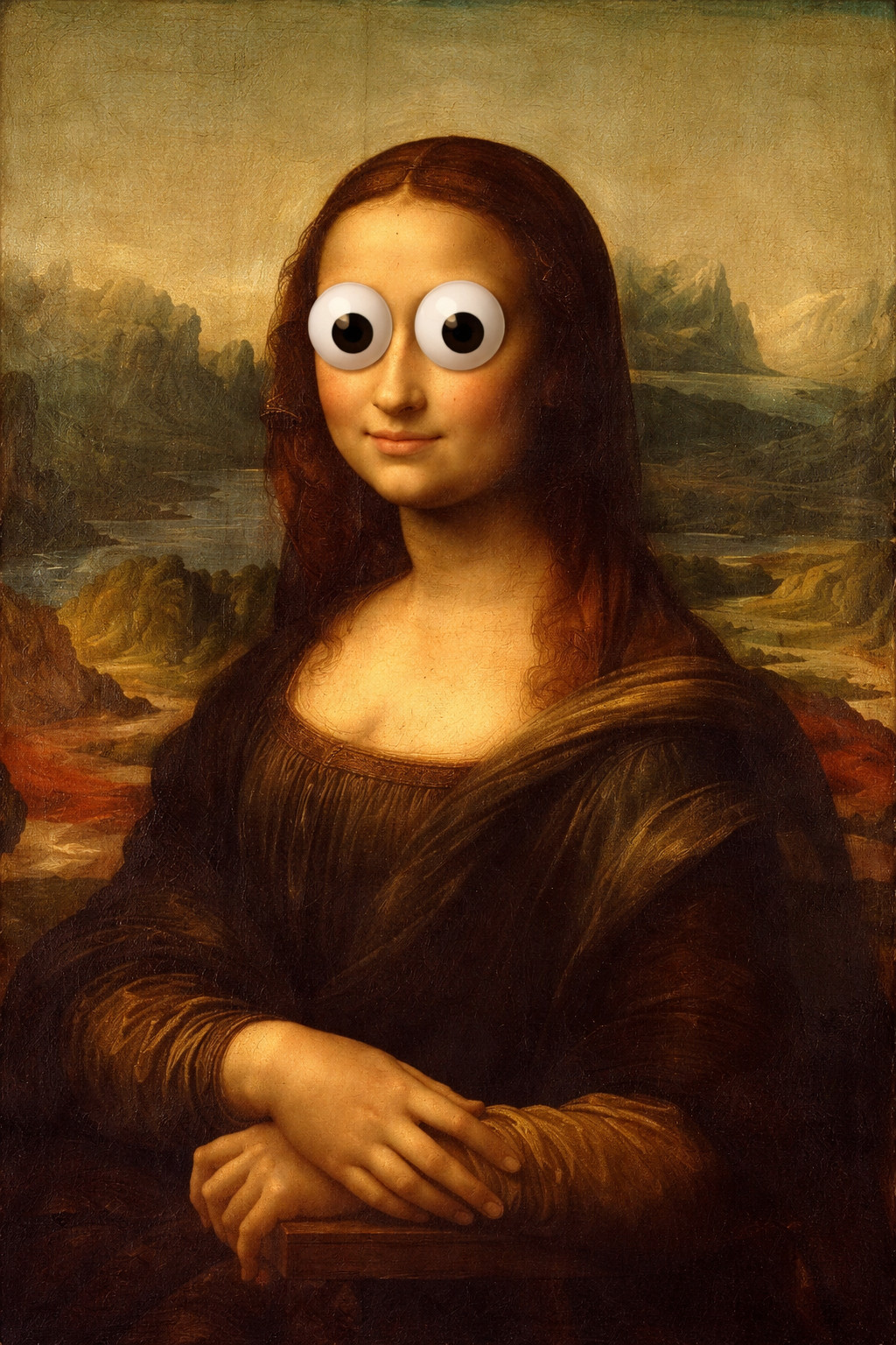 An evil and dangerous miscreant dared to defile the artwork… by sticking googly-eyes on it.