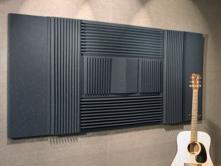 In music classrooms and recording studios, you often see acoustic foam tiles like this, the spiky mini-pyramids or ridges like this: