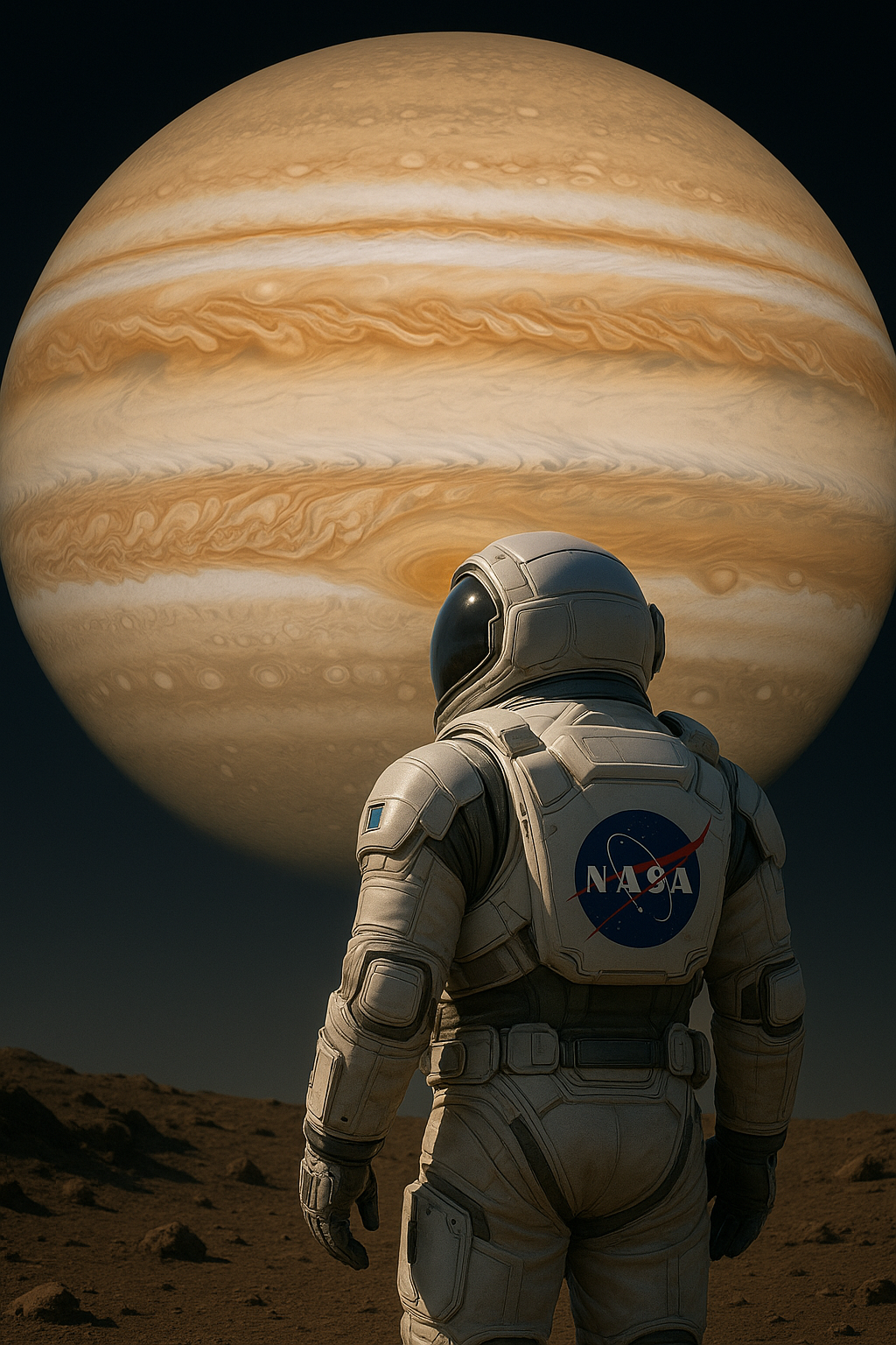 After many attempts, I was finally able to render a highly accurate photo of Jupiter and the surrounding solar system from a different vantage point: