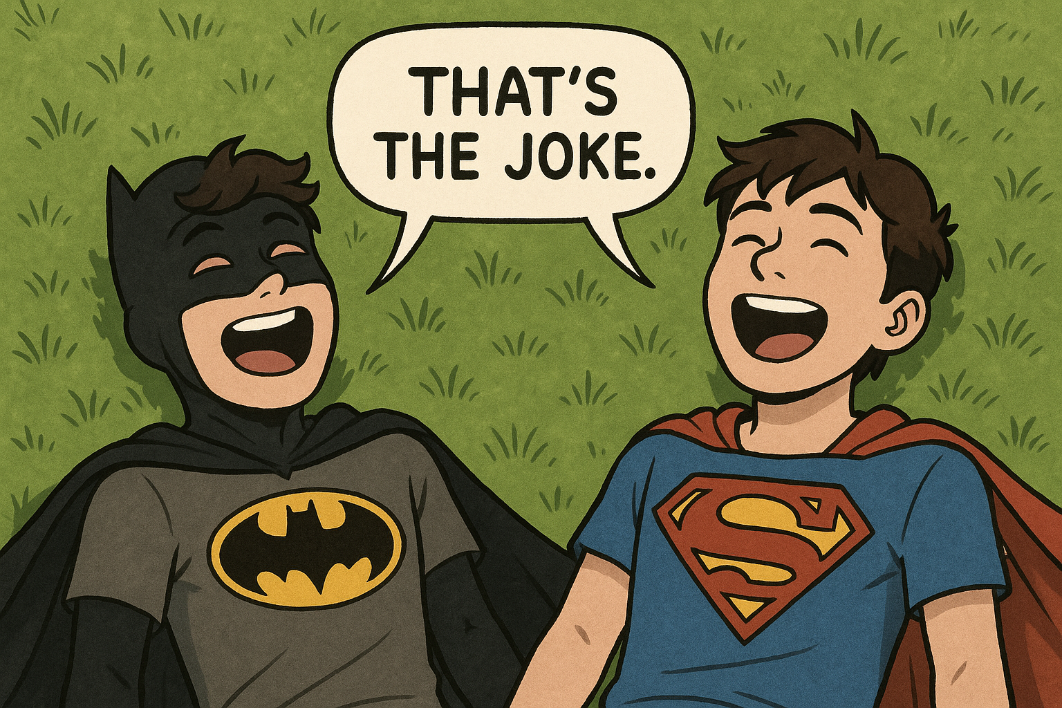 Now granted, I’m not a comics guy, but I’m having trouble picturing a comic where Batman and Superman are laying out in the grass staring up at the sky like a couple of teenagers…