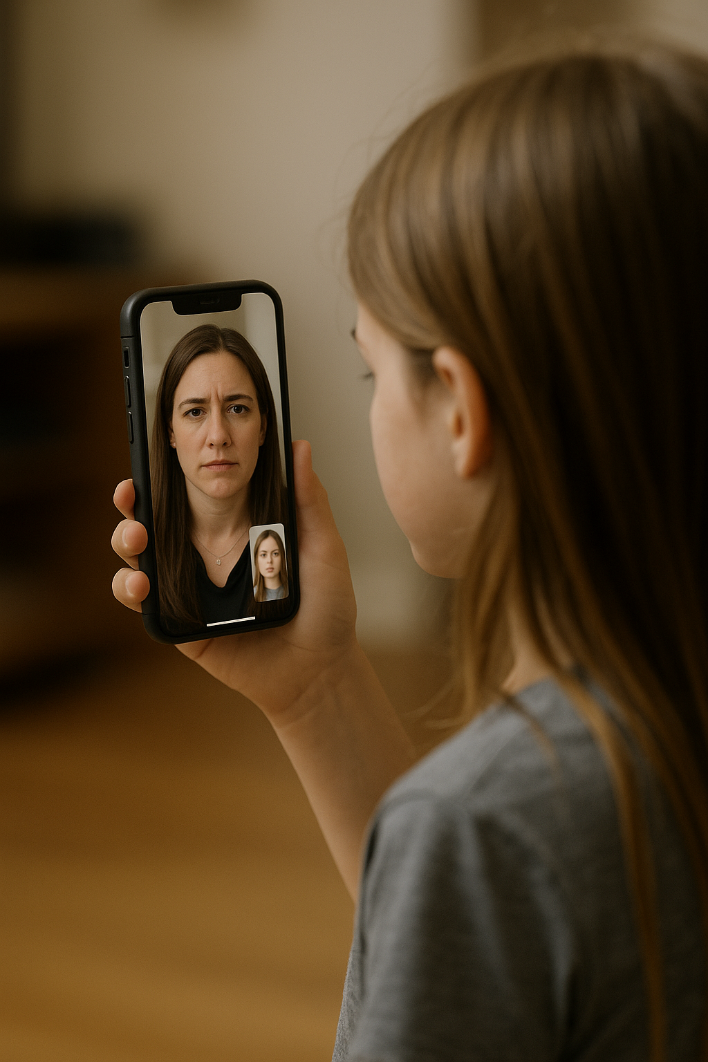 This is what ChatGPT thinks a facetime conversation looks like. The girl was alone, facetiming her big sister.