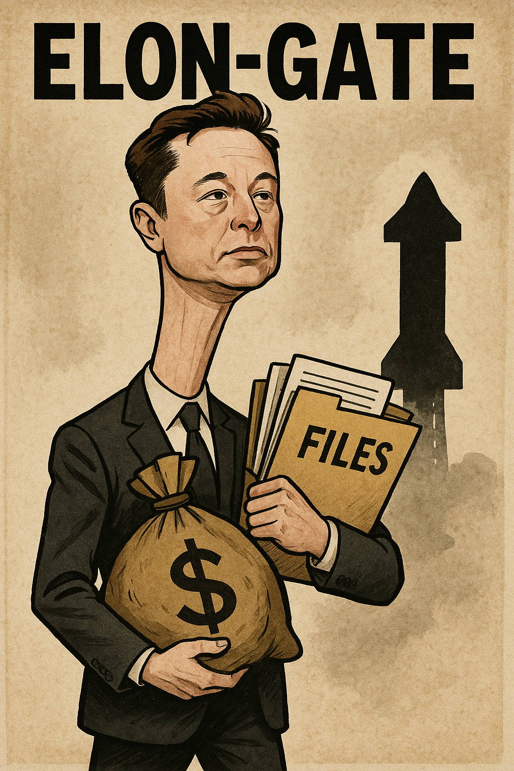 Prompt: generate a visual representation of a governmental scandal entitled elon-gate