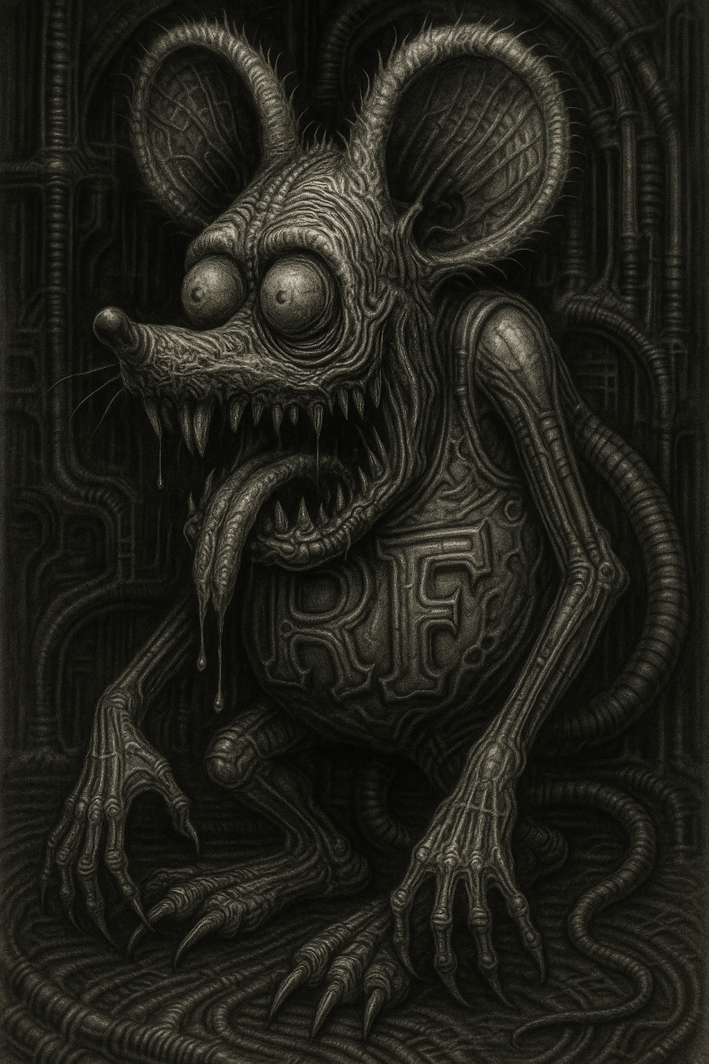 I replaced the rat with a possum, the sausages with blobfish, and the list of items in the cart with “many random unusual food items”: