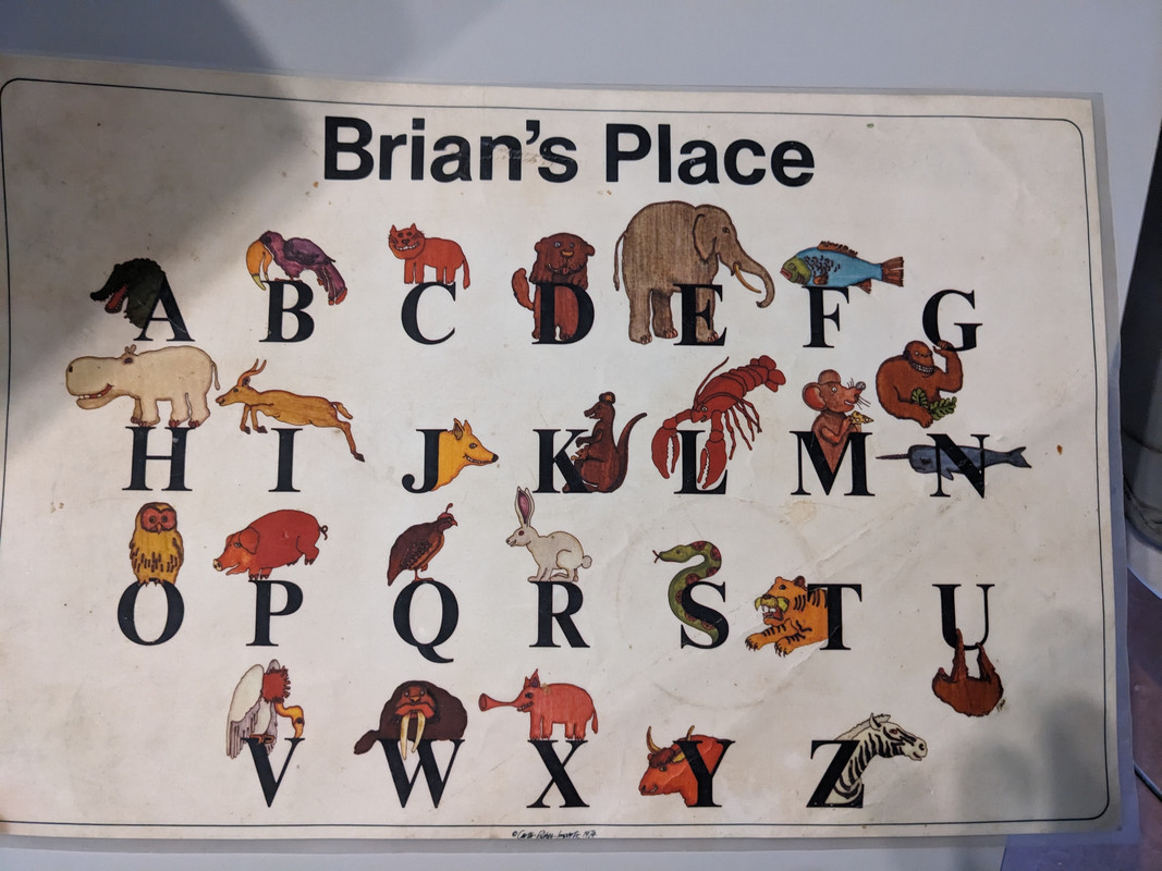 Anyone remember a placemat with a different animal for each letter of the alphabet - with a narwhal for the letter N? I’m guessing this would be late 70s / early 80s.