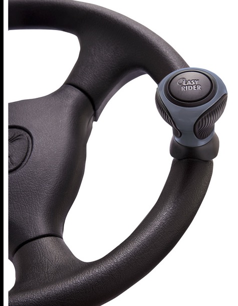 Properly called “Necker knobs”, or so my Dad told me when I was a youngster. Makes it easy for the (male) driver to be way over on the other side of the bench seat of a big 1930 or 1940s car with his (female) passenger entertaining one another while still steering with an outstretched left arm and an occasional glance forward.