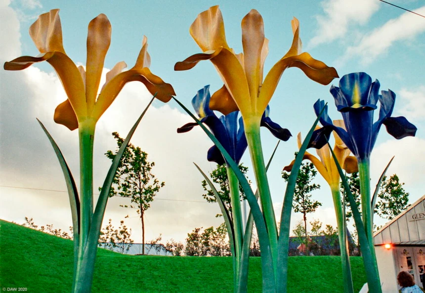 The New Town of Glenrothes wanted to put itself o the map, and as being a New Town meant they had a public artist in residence, they commissioned a really quite impressive bit of sculpture in the shape of giant irises.