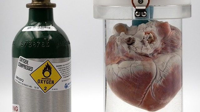 At a quick glance, it looked like a tribble in a giant glass cylinder. A closer inspection revealed it to be a human heart, in a system called ULiSSES, which stands for Universal Limb/Organ Stasis System for Extended Storage. Somebody stayed up late working on that acronym. This is an award-winning device for storing and transporting organs for transplanting: