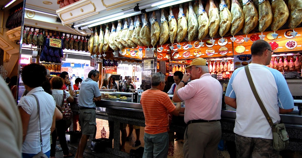Come to Spain, walk into any bar. Chances are there’s a bunch of hams hanging from the ceiling, it’s a traditional decoration.
