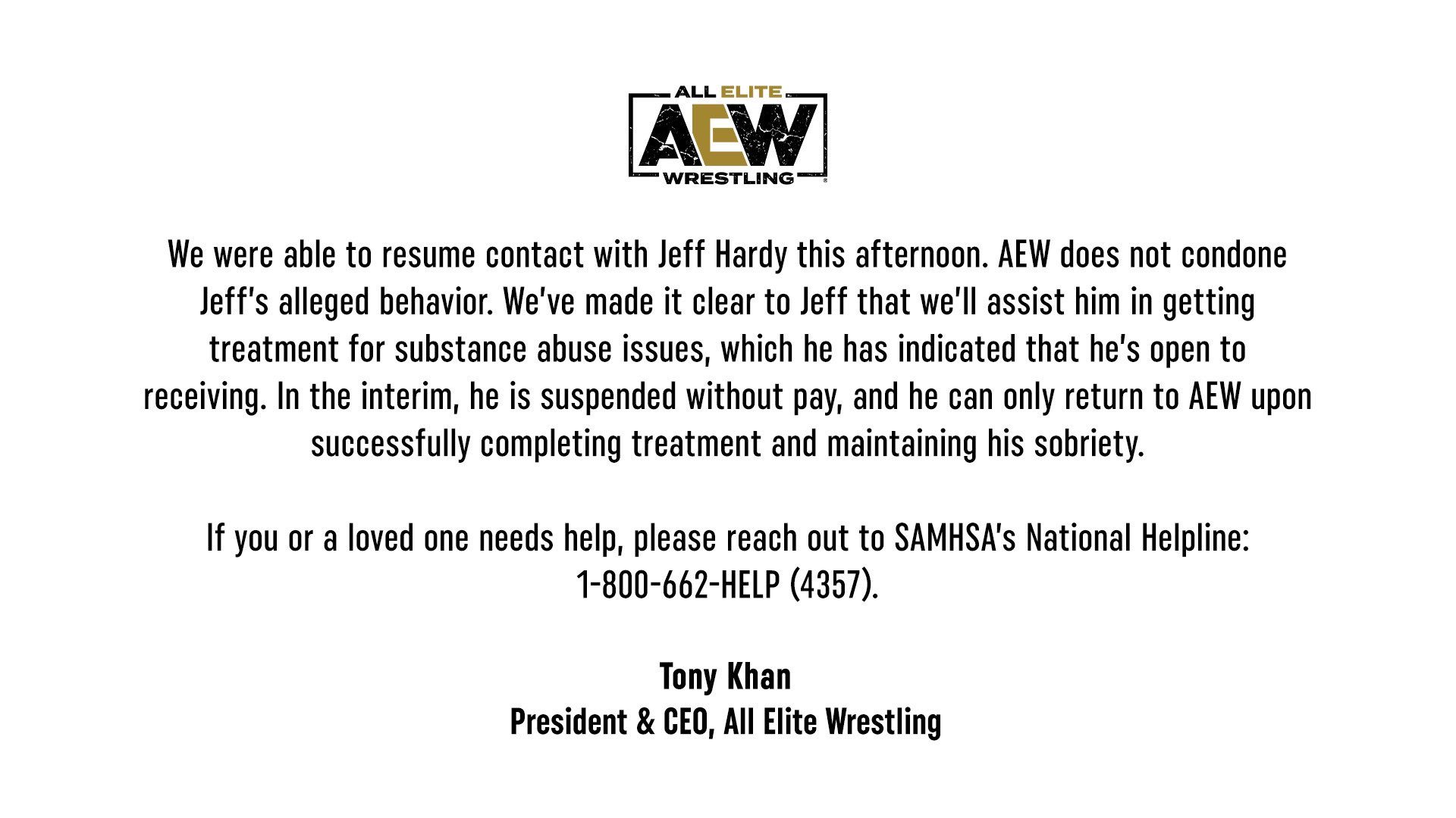 AEW is pausing promotion of the triple-threat tag-team title match that Jeff was supposed to be involved in tomorrow night on Dynamite. It’s probably off. I wonder if they’ll just do Jurassic Express vs. The Young Bucks with no involvement from The Hardys.