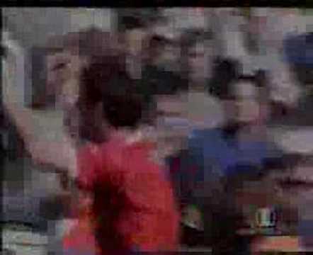 If you look back at footage from the 50’s and 60’s you’ll see the standard celebration is one of walking back to you won half (for the kick off) while giving the teammates you encounter a hand. Nowadays there are a 1001 ways of celebrating a goal. Some people run away, others do backflips and still others stand still like Cantona does. I think there is even an instance where Peter Crouch does the robot…