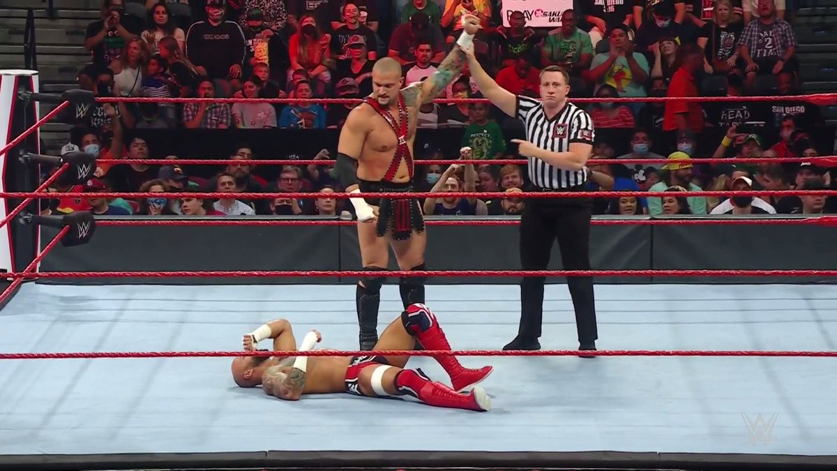 While I would like to see more done with Ricochet, given his current place in the WWE framework, jobbing him out to Karrion Kross sadly makes sense. BUT that og-awful ring gear…