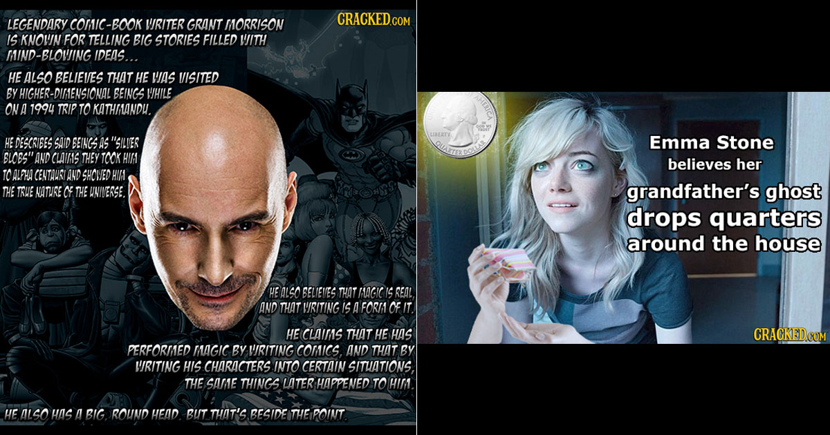 Cracked.com periodically runs articles along the lines “7 Celebrities with Wacky Beliefs” but they could as easily find similar nonsense from the Joe Sixpacks and Sally Housecoats of America.