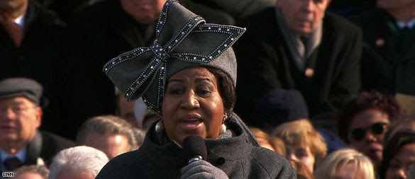 Oh, on most other people the hat would have been appalling, but on Aretha? It goes with her. And yes, the singing was below usual Aretha standard, but heck, time does not pass in vain, and freezing air isn’t exactly helpful.