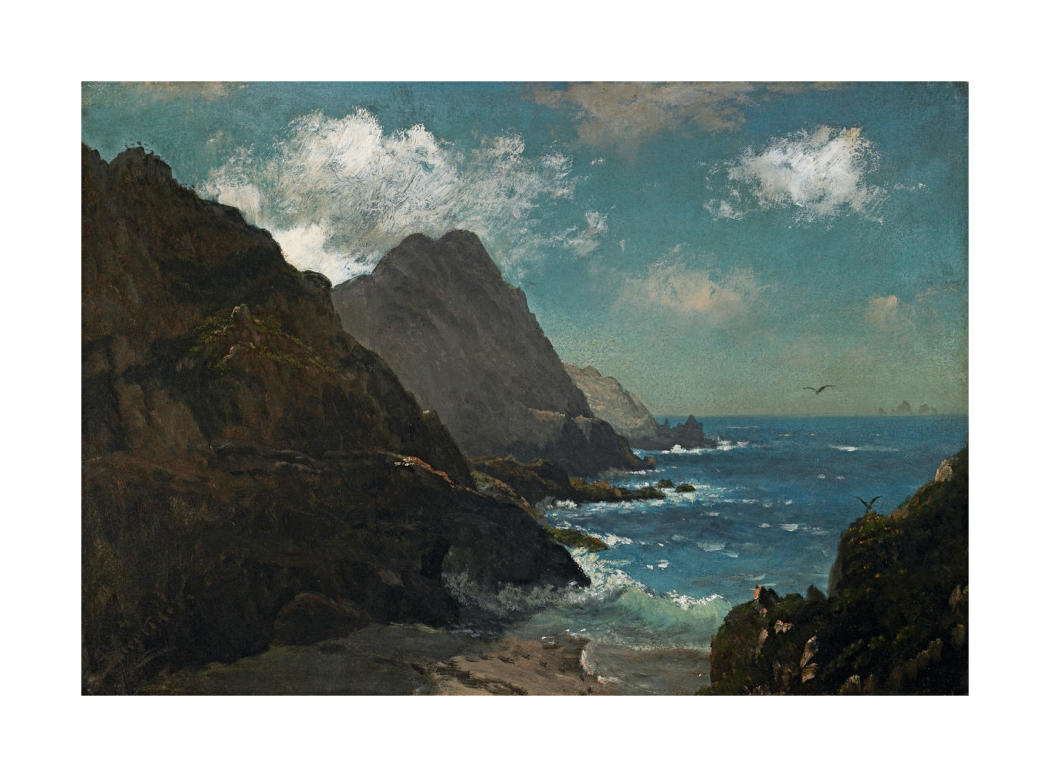 I have a framed museum copy of this Bierstadt of the distant Farallon islands from a beach hanging in my study . It’s very evocative for me personally, because I used to live a few blocks from Ocean Beach in San Francisco and on a very few veryyyyy clear days you would get those same tell-tale outlines in the distance.
