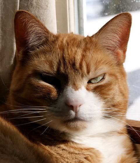 Which would mean my switching my avatar to an orange cat, since Eddy, Teddy, and Freddy (RIP) were orange boys. Should I do that? Or stick with this one, which is of my thumb-boy Schooner (RIP)?