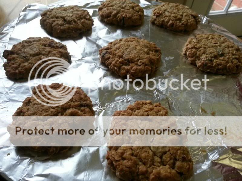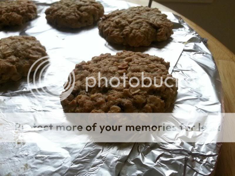 so after letting these cool and having 3 :eek: I have to say, yummy. And I think I prefer the craisins, they aren’t as strong in flavor as the raisins and seem more balanced with the other flavors in the cookie. I think adding white chocolate chips and macadamia nuts would make it even better next time!