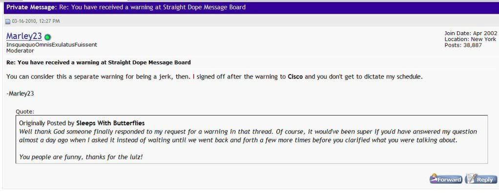 Do I get a warning for calling those warnings bullshit? I mean, it’s an observation about someone specific’s actions that isn’t positive, so I guess that’s a personal attack, or I’m displaying “attitude” or disrespecting him, or something. Maybe it’s an insult to imply that Colibri got a lot oversensitive and aggressive, or to imply that maybe he has a little mod-crush and is trying to impress her.