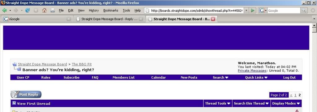 And it’s the same here. If they were going to do something with the server that changes the appearance of the boards as dramatically as these banner ads do, there should have been an announcement about it beforehand, along with an explanation of why it was happening, and how long it would last.