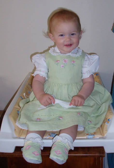 Here is Flora (my little sister) in her new dress and Flora and me both looking very silly
