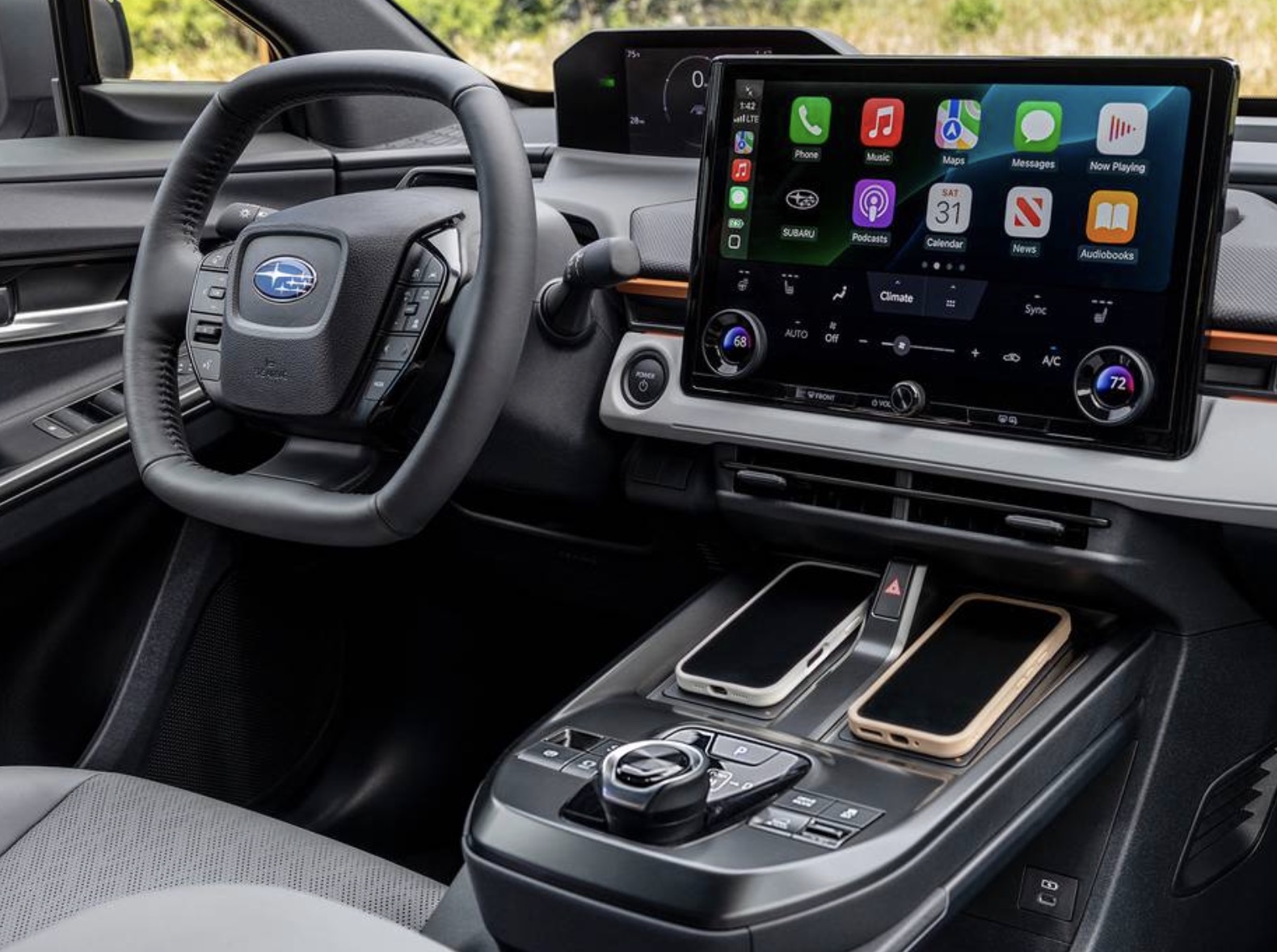 As far as AWD goes, we take it offroading all the time (but not like dune crawling or rock hopping, just what we in the US call forest service roads… mostly dirt, gravel, and sometimes mud). It handles really quite well in those environments, like any other Subaru I’ve been in, just with much improved acceleration (low-end torque). The BEV-ness of it actually makes navigating ditches and potholes and such a lot easier; it’s so much easier to get back to speed immediately after slowing down for a bigger dip, and the regen limits brake wear from all the starts-and-stops of such driving.