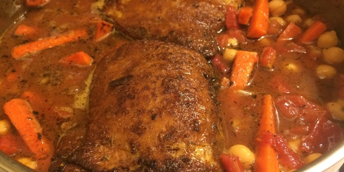 I have a recipe for a really good chicken curry. It’s prepared on the stovetop, of course, but you won’t end up with crispy skin. (Instead, it uses skinless chicken legs.)