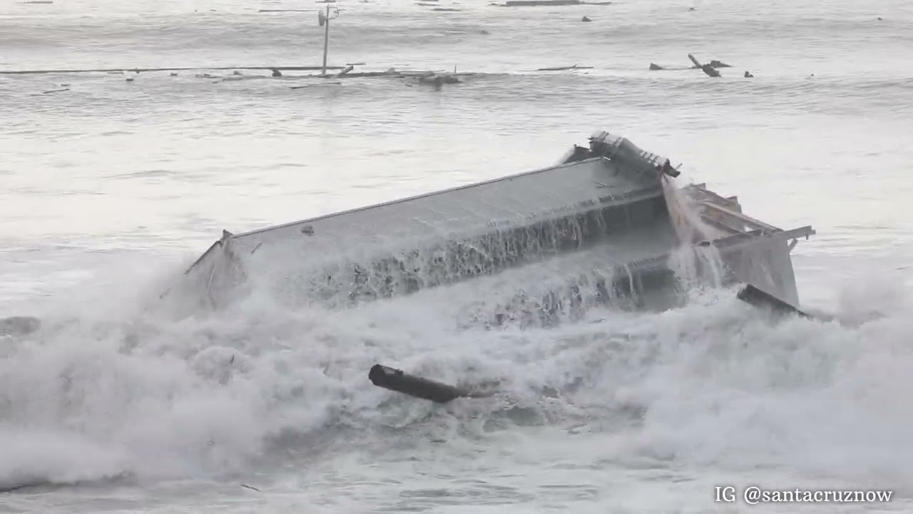 On Instagram someone posted a video of it failing ➜ KSBW on Instagram: "WHARF COLLAPSE | Video from a home near the wharf shows the moment the wharf collapsed into the ocean. Link in our bio." ■