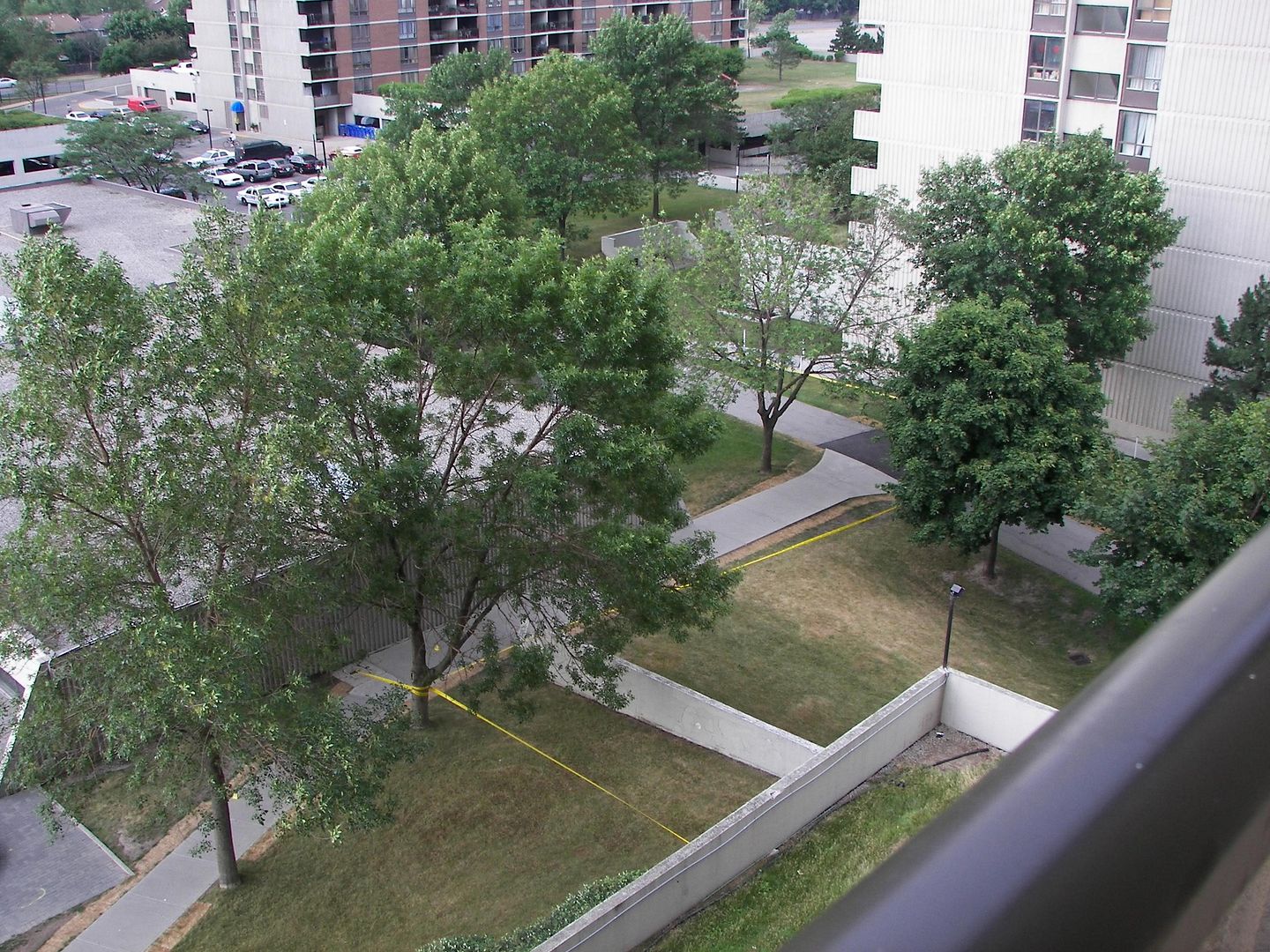 Apparently some sort of crime went down around my apartment building today. A large area is cordoned off with police tape. Placed here and there along the length of the footpath behind my building (where my balcony overlooks) are evidence markers – 5 of them aong the footpath, and at least one other that I could see across McMurchy Ave. (numbered #9) where the sidewalk on both sides of the street is taped off for a good hundred feet or more. There’s a cadre of police cars in the parking lot between the two buildings across from mine. There must have been some sort of foot chase. No idea what happened here though, but whatever it was it must have happened within the last few hours, as it’s in the process of being wrapped up. (They’re removing the markers and bagging/swabbing/whatevering the evidence as I type) I’m curious to see if it makes the news.