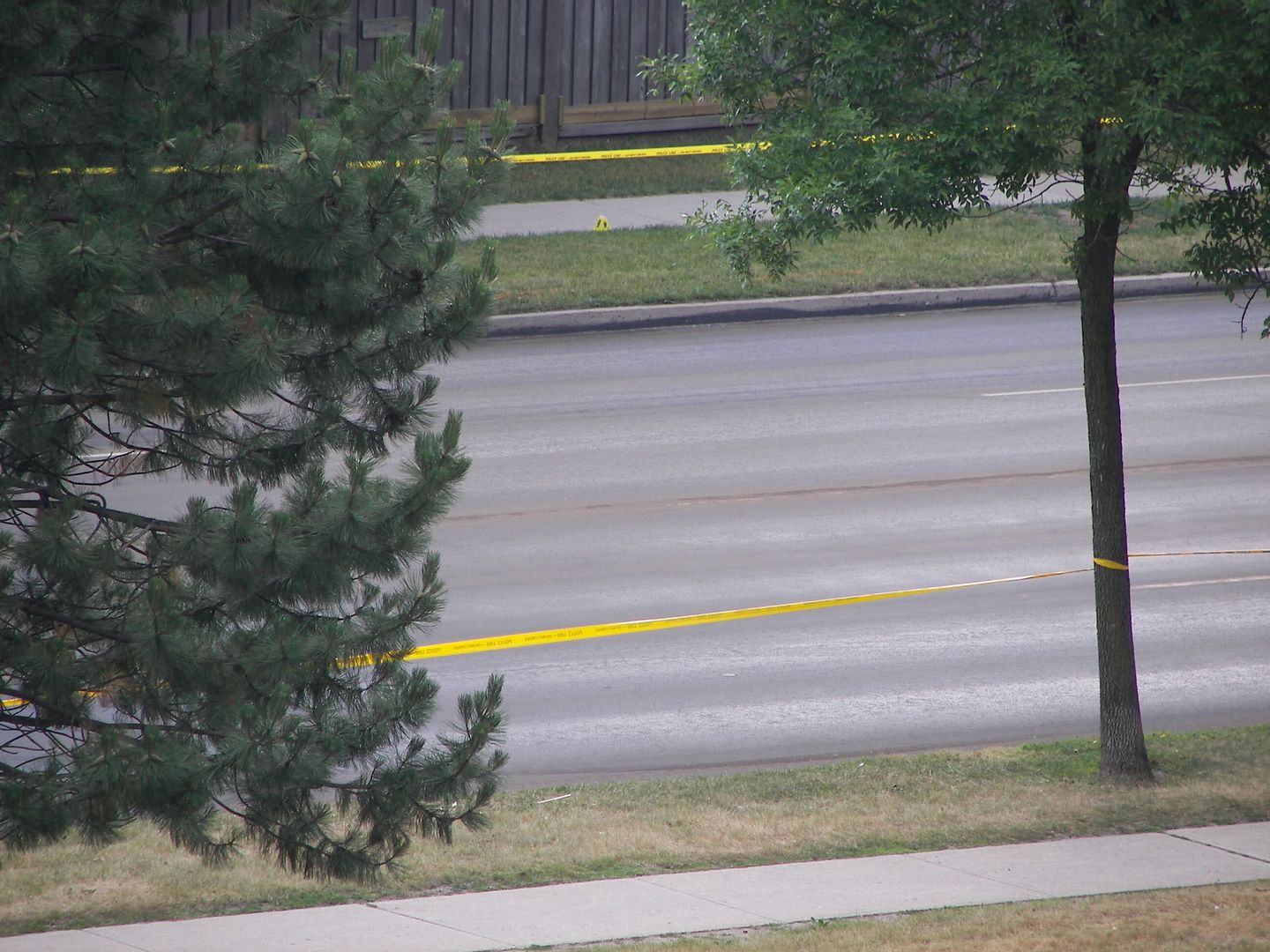 I have a feeling it might have had something to do with a fight that broke out a few nights ago with some pasty, shirtless white teen yelling at some other teens at the top of his lungs; the cops showed up to that party, too, but nothing serious seems to have gone down. Maybe now it has. MindWife says she didn’t hear anything, and considering how close those evidence markers are, it’s unlikely they’re shell casings; she would have heard gunshots.