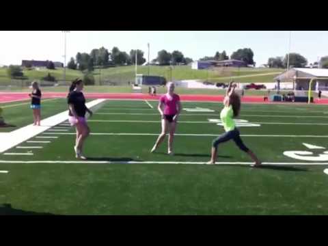 video is only 15 seconds, but hilarious. Looks like her knee bumped her jaw.
