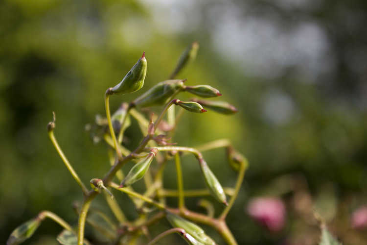 I ignore whether they sprout from a ryzhome or similar every year or whether they are annuals, sprouting anew from seed and I did not want to dig one out. They have beautiful flowers that look similar to the Antirrhinum or snapdragon, but they are attached differently. And the seed pods, for me the most interesting bit of the plant, are completely different: they are like minuscule bean pods, but with five bits that surround the seeds. You can see them here, the pointy parts: