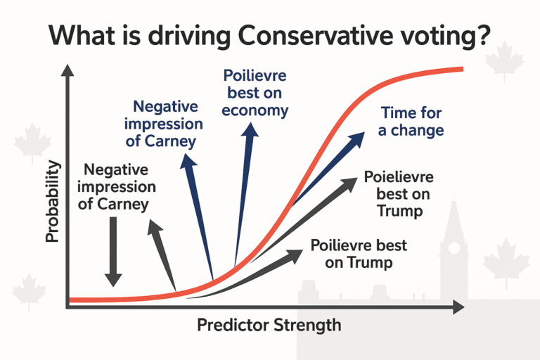 These scenarios reveal the limits of the Conservative coalition and reinforce a central insight from the model: Poilievre’s support is strong, but not yet broad. Without a deeper sense of urgency for change across the electorate, the party will struggle to build the winning coalition it needs.