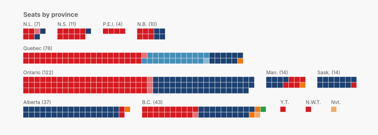 They are all ridings where the Liberals are currently in second place. Last night, they went from 163 projected seats to 168 as advance and special ballots were counted, in some cases making up several hundred or even 1,000-vote deficits — so these could flip. The Liberals need four of the following 11 ridings to do that.