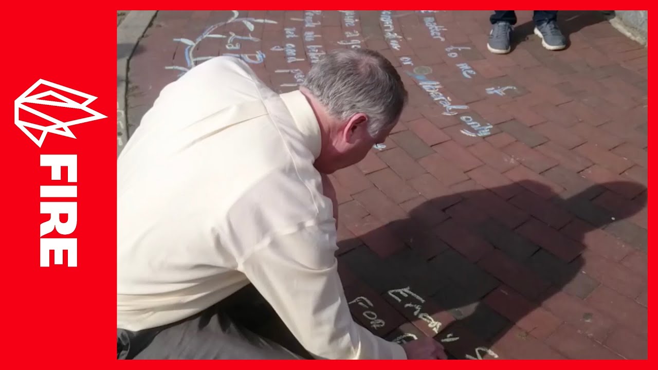 Perhaps realizing that his pledge to identify “social justice opportunities and issues” in response to purely political speech smacked of speech-chilling, Wagner wrote “EMORY STANDS FOR FREE EXPRESSION” on the ground at a Young Americans for Liberty tabling event last week. (The video was posted by the Foundation for Individual Rights in Education today.)*