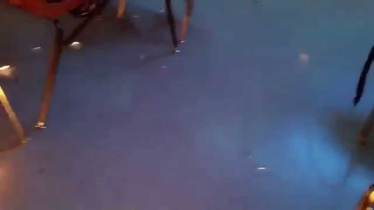The teacher is holding a graduated cylinder containing some rapidly oxidizing substance. Just when the reaction really gets going, he dumps the contents onto the floor and it rapidly spreads out in all directions beneath the students’ feet. He must have briefed them beforehand because nobody is screaming bloody murder like you’d expect if there were fire rolling around the floor just inches below you.