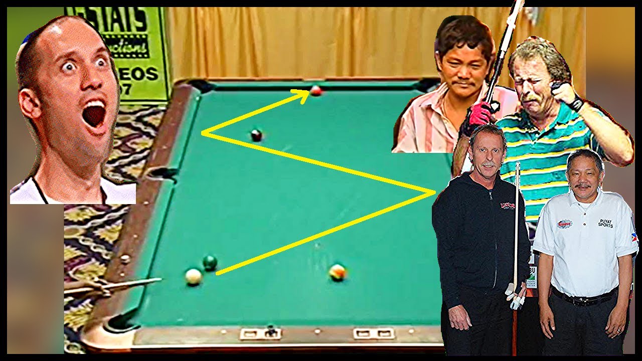 So the situation was this was a race to 13, and both players stood at 12. Shot is at about 3:30 in, and the game is 9-ball. He hits two more shots after the “Z shot” and Earl Strickland concedes without having him shoot in the 9.