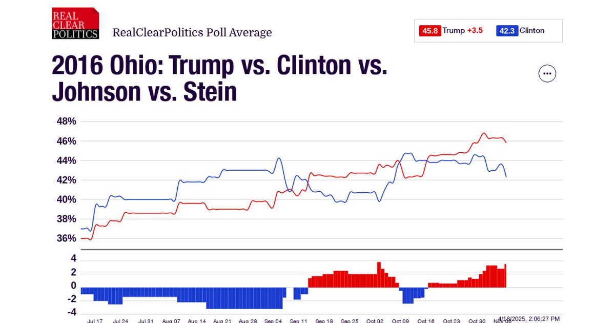 Not sure why 538 has Ohio light blue, Trump has a very slight lead:
